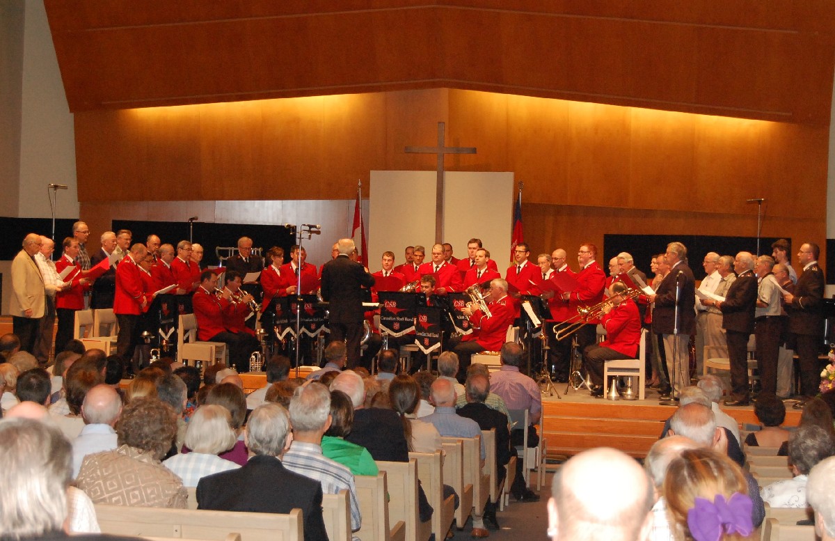 The second half of the program featured no less than four Bearcroft pieces, starting with the march To Regions Fair. Then it was the popular Just Like John, introduced and conducted by the composer in his own inimitable style. During the playing of this old favourite, written for the Canadian Staff Band during its formative years, the audience enjoyed a slide presentation featuring humorous and light-hearted CSB memories from the previous four decades.