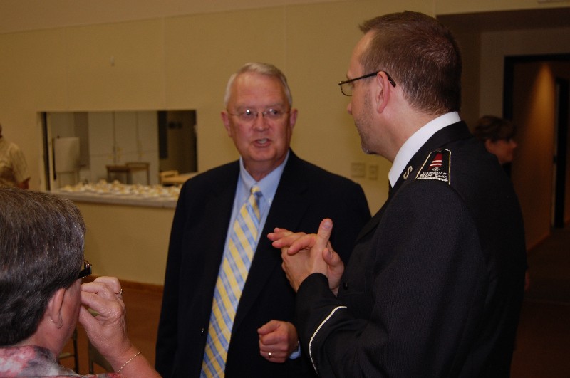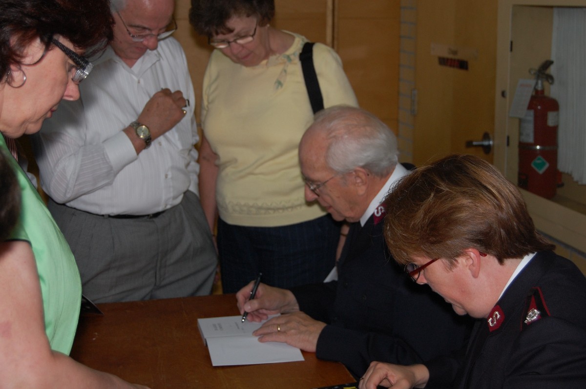 The intermission gave opportunity to purchase Colonel Bearcroft’s new book, In Good Company. The limited supply of books went quickly, and many took advantage of the chance to greet the author and get his signature.