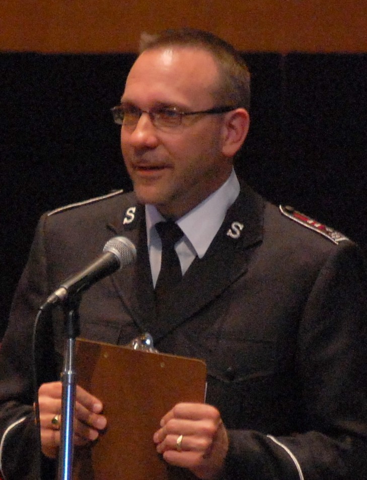 The second solo of the evening was the world premier of a new work by Colonel Robert Redhead, who was invited to the platform to introduce it. Salvus, featuring euphonium soloist Stephen Pavey, features Martin Luther’s “A mighty fortress is our God” and the contemporary worship chorus “I cast all my cares upon you.” Written as an expression of the faith that Steve and his wife Valerie demonstrated during the serious illness of their daughter over the past two years, this major work is based on the promise of Psalm 91 that God is our refuge and strength and will keep us safe (Latin ‘salvus’) when we put our trust in him. The presentation was warmly received by the audience.
