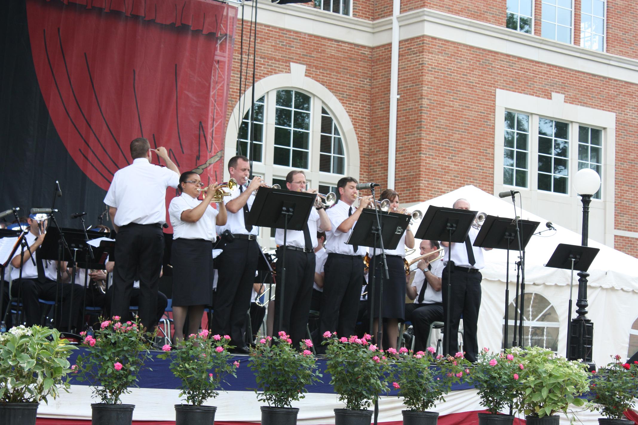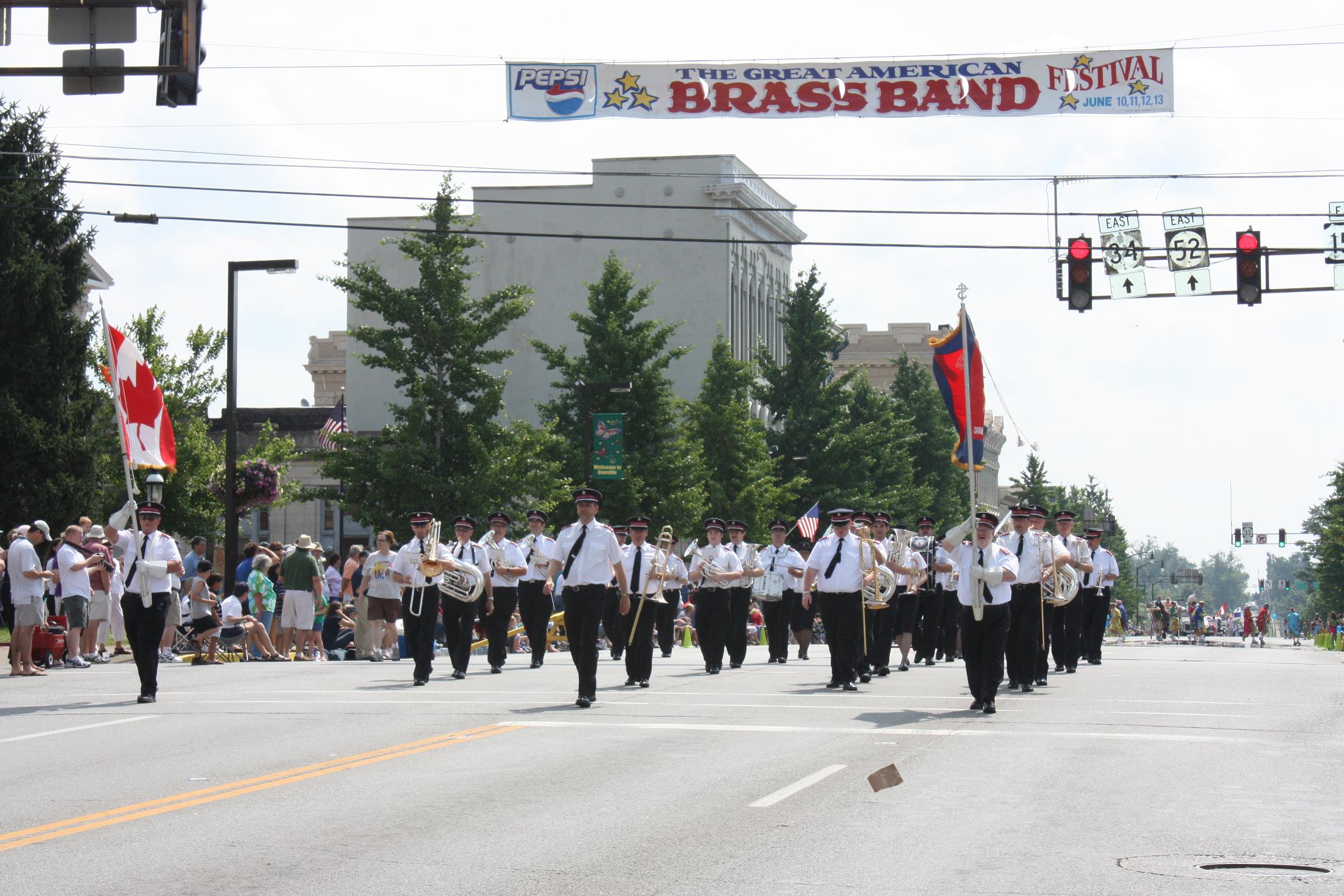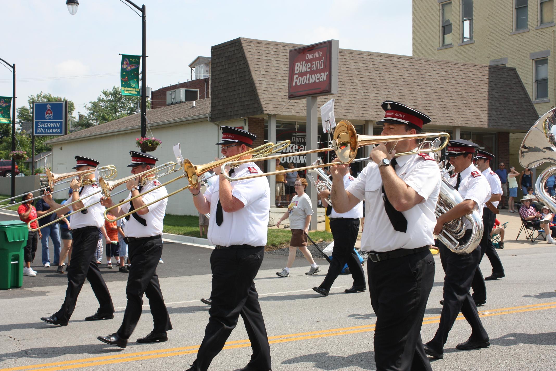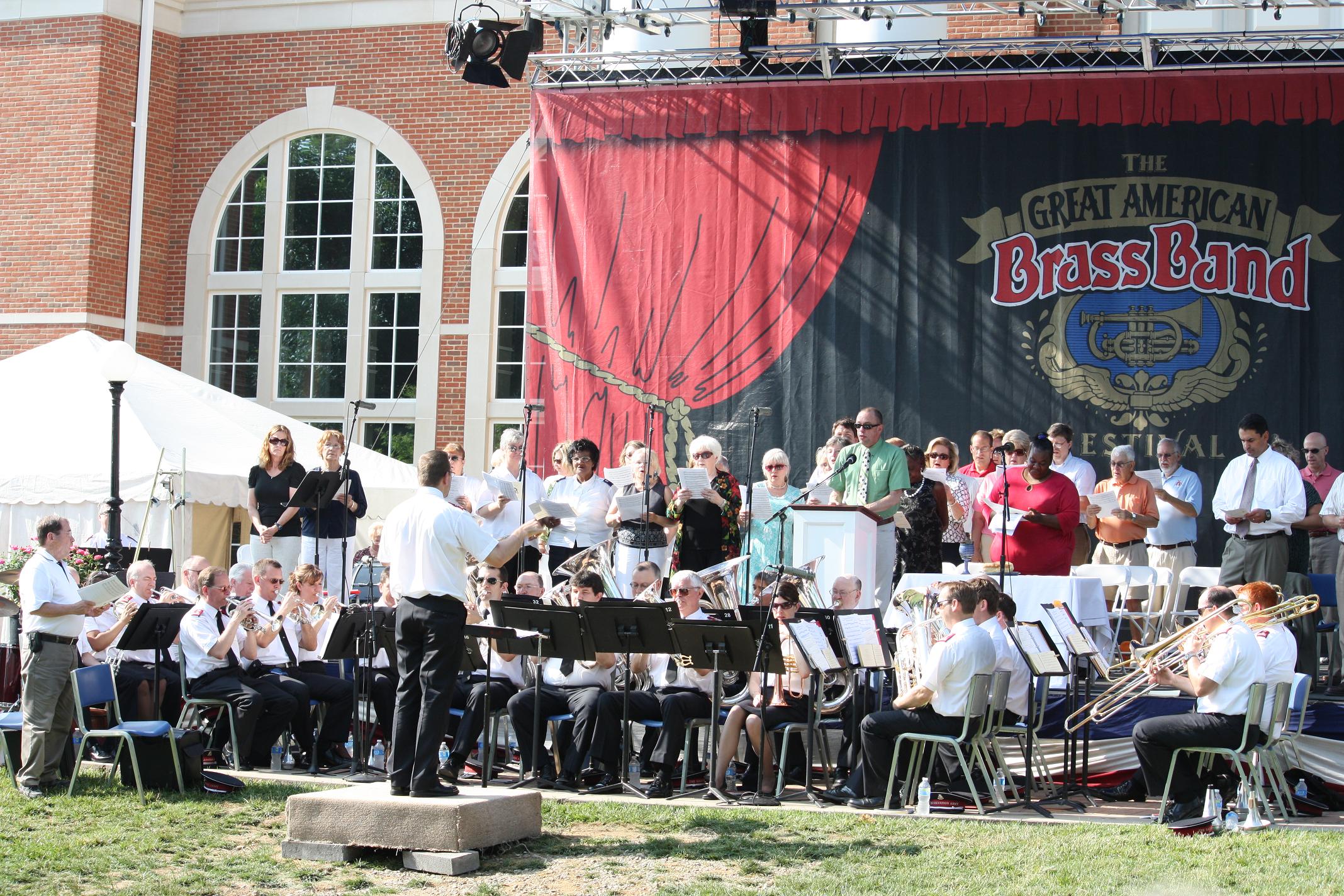 The weekend of June 11-13, the CSB was privileged to participate as one of the guest bands at the 2010 Great American Brass Band Festival. Commencing in 1990, the event is held annually in Danville, Kentucky, and features a wide variety of brass bands, a hot-air balloon race, a colourful parade down the main street, a picnic and other activities. Each year up to 40,000 people travel to the small town (population 15,000) for the event. Bands play at various venues where people can spread out on the spacious grounds of Centre College, soak up the sun and enjoy the festivities. A highlight is the ecumenical worship service on Sunday morning, always accompanied by a Salvation Army band and featuring a community choir drawn from area churches. Most CSB members had been there previously, either with the CSB during its previous visit in 1999, or with their own corps band. It was a long bus ride there and back from Toronto, but all agreed it was well worth it to take in this marvellous musical extravaganza.