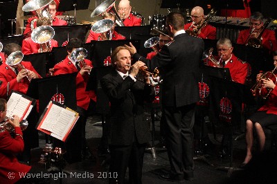 The Rising Sun, accompanied by the CSB. It was an awe-inspiring performance that left both band and audience breathless. Vizzutti's flawless renditions on piccolo trumpet, flugel horn and regular trumpet - including some very impressive cadenzas - simply left everyone spellbound in what seemed like a completely effortless presentation, leaving no doubt is to why he is considered one of the greatest trumpeters of our time.